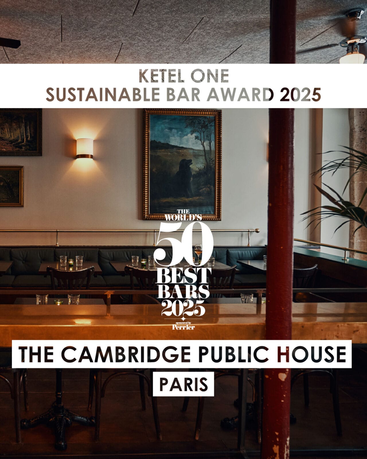 Côté français, trois bars parisiens ont été distingués : Bar Nouveau (17e), The Cambridge Public House (20e et vainqueur du Sustainable Bar Award également) et Danico (30e).