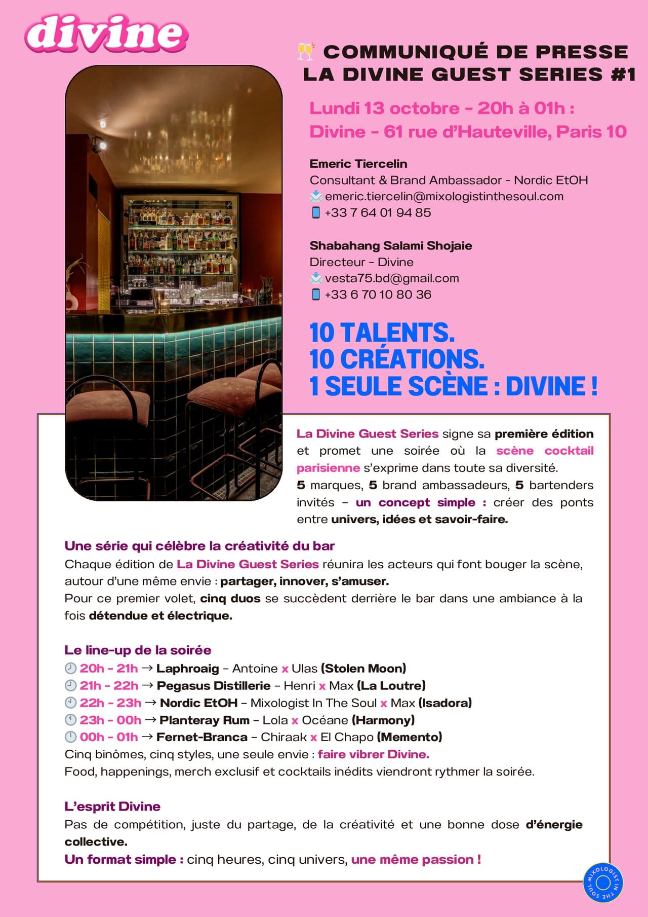 La Divine Guest Series signe sa première édition et promet une soirée où la scène cocktail parisienne s'exprime dans toute sa diversité.