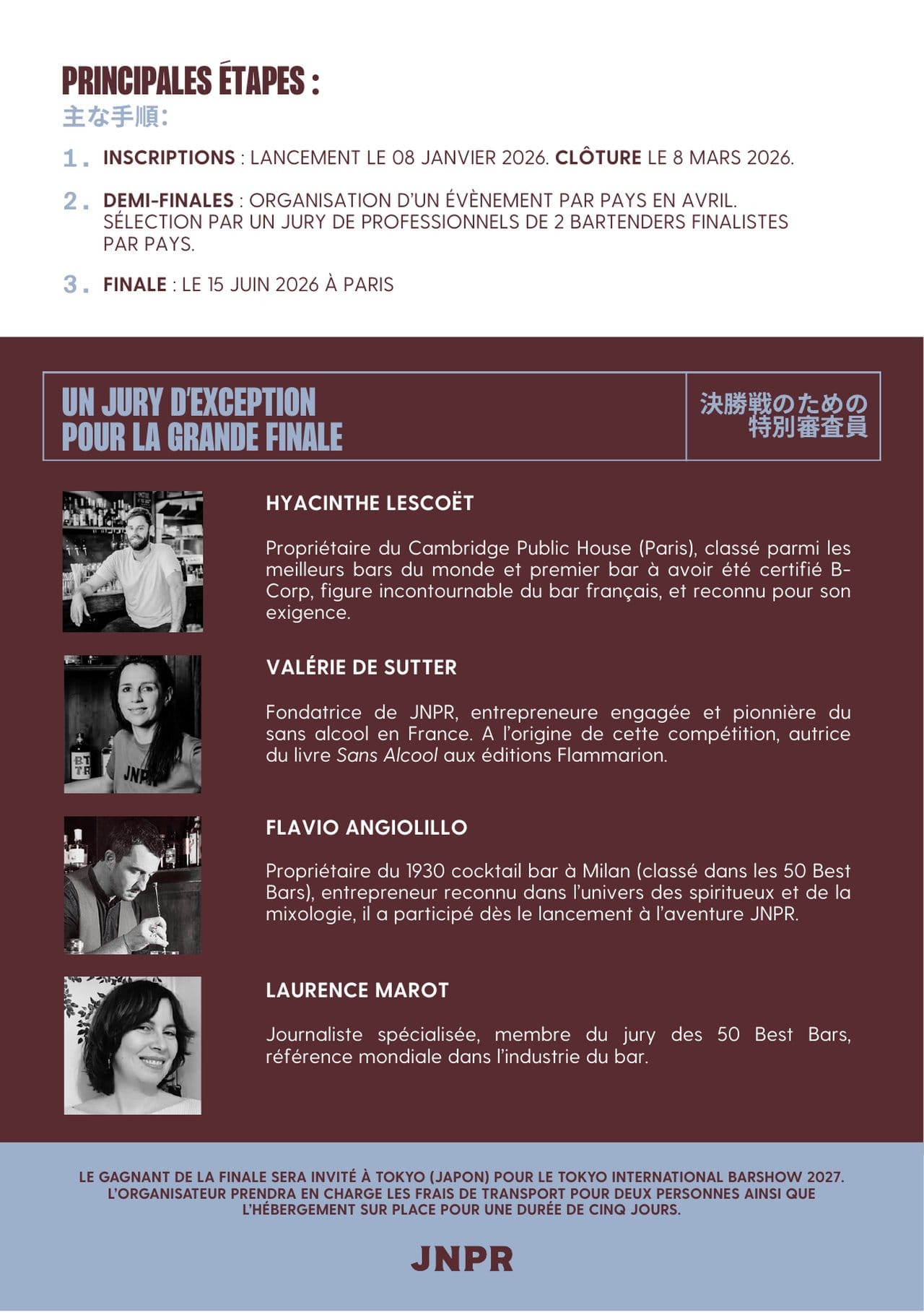 Le gagnant sera invité à représenter JNPR au Tokyo International Bar Show 2027, référence mondiale de la scène bar.