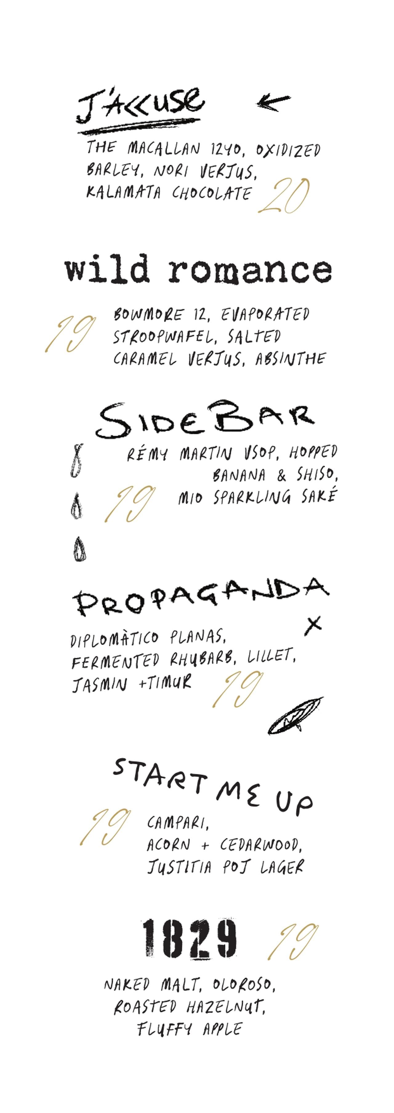 La mode des menus très élaborés me semble légèrement passée ; on a tendance à aller davantage droit au but. Cela dit, tout dépend du type de bar. Quand le concept de l'établissement est fort et bien défini, il devient naturellement le concept du menu - une bonne alternative à un menu thématique séparé.